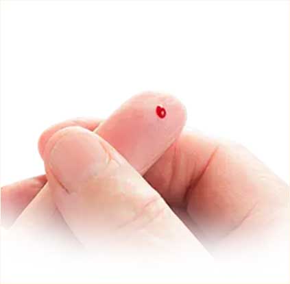 Collect 2-3 drops of blood on a special card. Then use the postage paid return envelope to mail your sample to a CLIA certified lab.